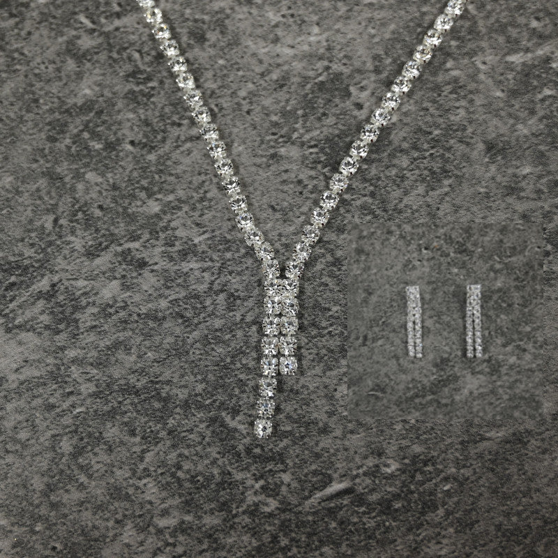 Παρουσιάζουμε το σετ μας Λάμψη, μια συμφωνία κομψότητας και λαμπρότητας που δημιουργήθηκε για τη μαγευτική γοητεία της βραδινής λάμψης. Τα σκουλαρίκια και το κολιέ Λάμψη, διακοσμημένα με μια λαμπερή σειρά από αστραφτερές πέτρες, ανεβάζουν απρόσκοπτα τη νυχτερινή σας εμφάνιση σε νέα ύψη. Το κομψό ασημί χρώμα χρησιμεύει ως καμβάς για τις εκθαμβωτικές πέτρες, δημιουργώντας μια αρμονική ισορροπία μεταξύ κομψότητας και λάμψης. Σχεδιασμένο σχολαστικά τόσο για αντίκτυπο όσο και για άνεση, το βραδινό σετ Λάμψη προορίζεται να είναι το επίκεντρο του βραδινού σας συνόλου, διασφαλίζοντας ότι λάμπετε σαν τα αστέρια. Φωτίστε τη νύχτα με αυτό το εξαιρετικό σετ, αποτυπώνοντας την ουσία της αίγλης και της κομψότητας με κάθε λάμψη.