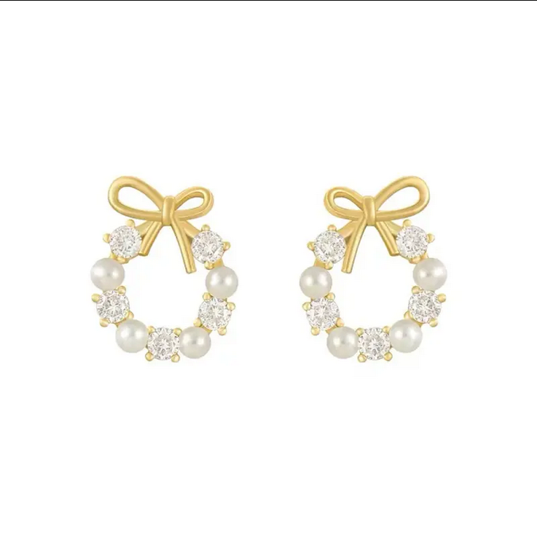 Χαρίστε στον εαυτό σας τα εντυπωσιακά Σκουλαρίκια Φιόγκος! Τα εντυπωσιακά αυτά σκουλαρίκια έχουν σχήμα στεφάνι φτιαγμένο με όμορφες πινελιές με πέρλες και ημιπολύτιμους λίθους, φέρνοντας το στυλ σας στο επόμενο επίπεδο.